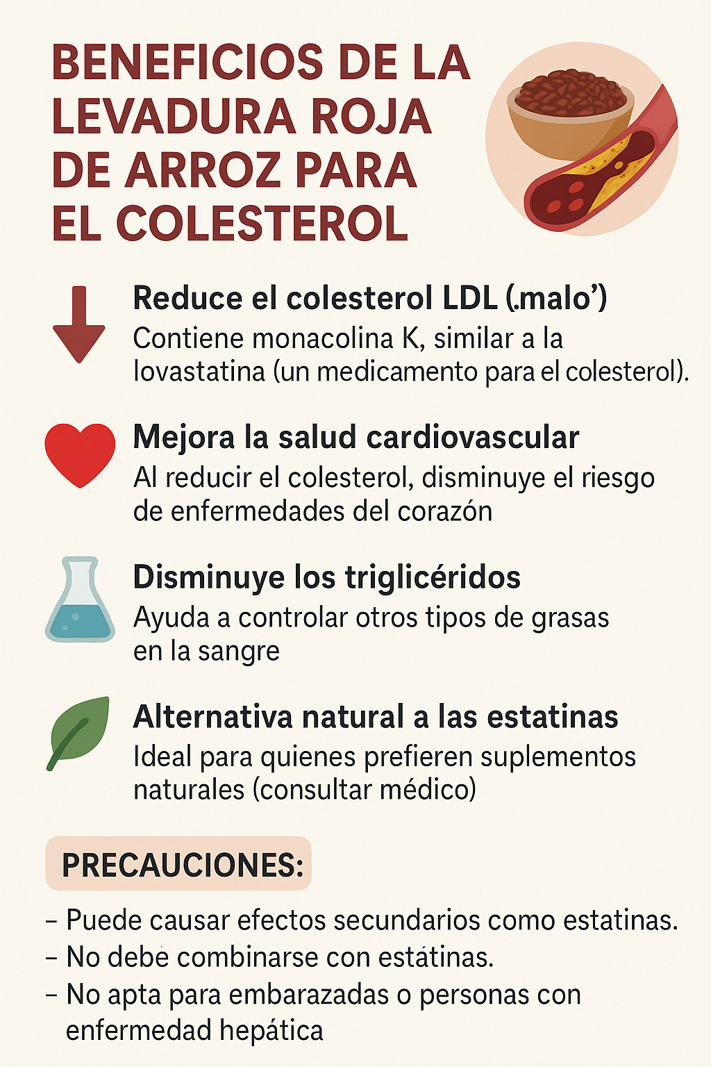 Descubre cómo la levadura de arroz rojo puede ayudarte a reducir el colesterol de forma natural. Conoce sus beneficios, cómo tomarla y precauciones.