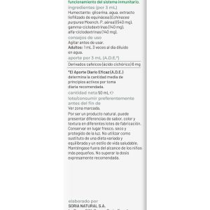 PROPIEDADES. El proceso de fabricación de los extractos de Soria Natural consigue concentrar el principio activo del orden de 6 a 25 veces más que en una tintura obtenida por los métodos habituales, dando lugar finalmente a un producto de alta actividad donde, además de concentrar el producto en principios activos, también respeta su contenido en otros productos sintetizados por el vegetal, y que pueden ser beneficiosos para el organismo humano, como las enzimas. Además se efectúa la cuantificación y estandarización de los principios activos, representativos de cada planta, lo que permite garantizar siempre el mismo contenido en principios activos, en todos los lotes de fabricación, además de lograr la concentración suficiente en las dosis recomendadas para conseguir la acción terapéutica deseada. Los principios activos han sido extraídos con vehículos seleccionados para este caso en particular y asegurando que no generan residuos que pueden ser nocivos para el ser humano. El vehículo de administración es la glicerina vegetal, que por sus propiedades físicas, actúa como conservante, sin afectar a la integridad química de los componentes del extracto.