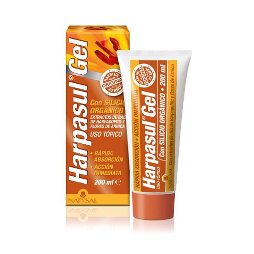 HARPASUL GEL 200 ml. NATYSAL. Gel balsámico de acción calmante, enriquecido con silicio, aceites esenciales y extractos de plantas como harpagofito o árnica. Este gel proporciona una acción inmediata defatigante y apaciguante muscular, aliviando de manera eficaz el cansancio y las molestias.