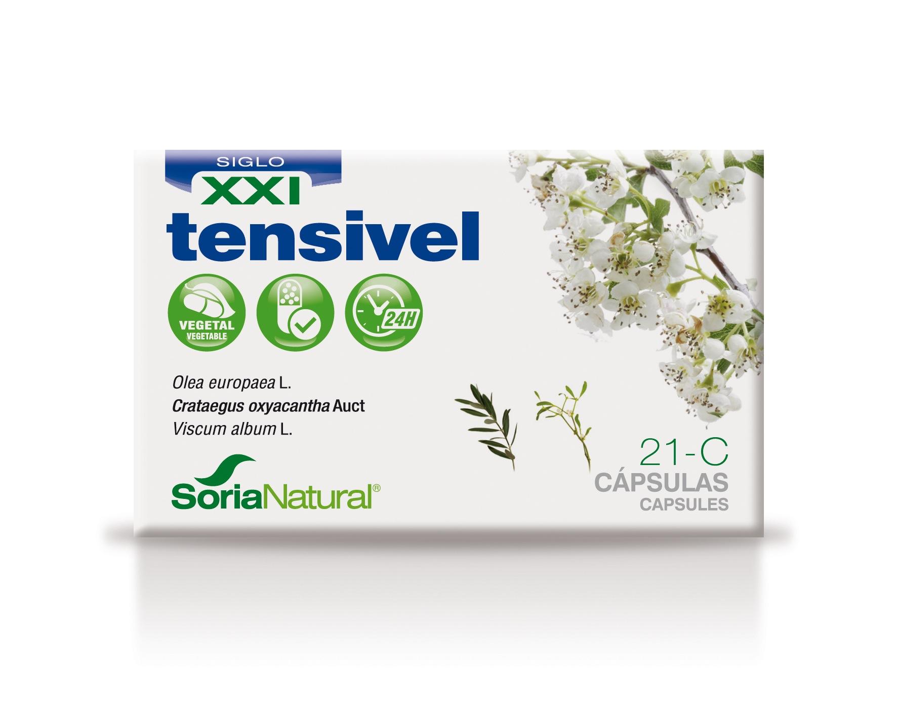 TENSIVEL 30 cap. de 690 mg. SORIA NATURAL. Salud del corazón. Mezcla de extractos de olivo, espino blanco y muérdago. Combinación de plantas que ayudan al corazón. Está indicado para casos de hipertensión, en trastornos del ritmo cardíaco (taquicardia paroxística, extrasístoles, palpitaciones, etc). A largo plazo es útil en fenómenos degenerativos seniles del miocardio y esclerosis de vasos cardíacos (insuficiencia cardiaca, angina de pecho, arteriosclerosis, etc) sobre todo como preventivo.