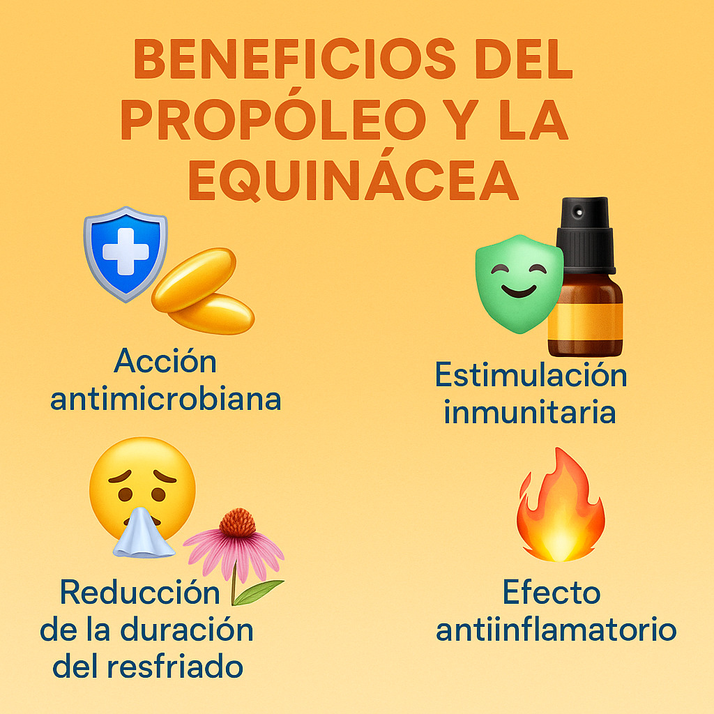 El propóleo y la equinácea son dos aliados naturales que, combinados, ofrecen una estrategia preventiva efectiva y bien tolerada para mantener el sistema inmunológico activo y preparado. Su uso responsable, dentro de un estilo de vida saludable, puede ayudarte a reducir el impacto de las infecciones respiratorias más comunes.