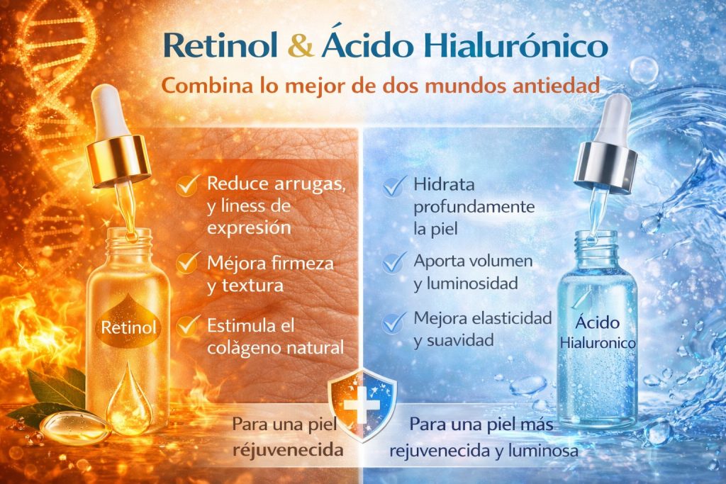 En el mundo del cuidado de la piel, hay ingredientes que destacan por sus resultados visibles y respaldados por la ciencia. Dos de ellos son el retinol y el ácido hialurónico. Usados juntos, forman una combinación poderosa que puede transformar la textura, firmeza e hidratación del rostro.