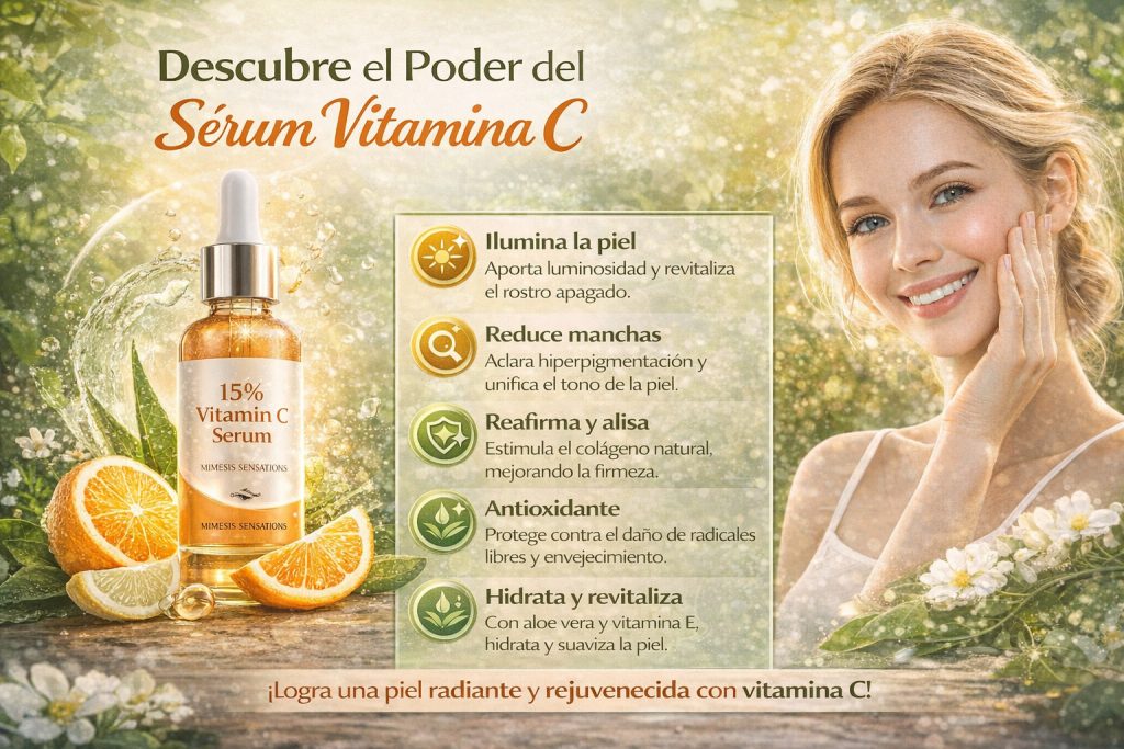 El 15 % Vitamin C Serum de Mimesis Sensations es una excelente opción para quienes buscan iluminar la piel, combatir los signos de la edad y mejorar la textura del rostro de forma suave y eficaz.
